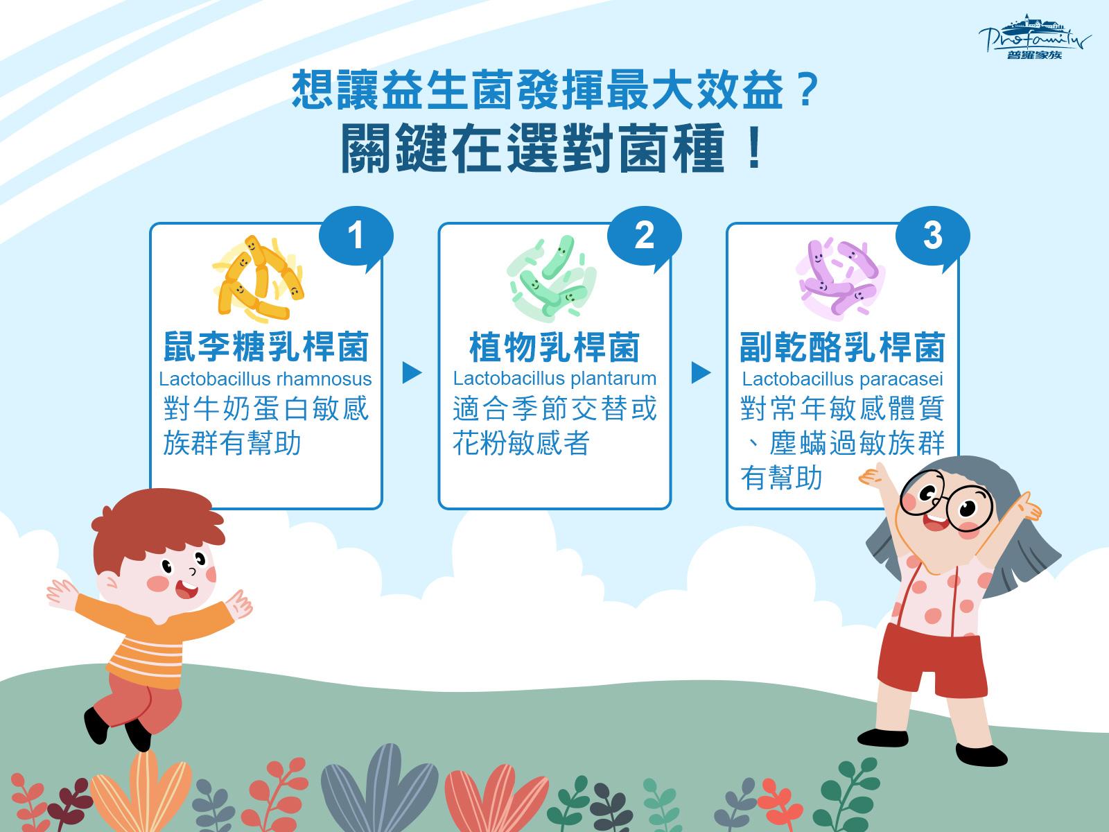 ➌ 副乾酪乳桿菌(Lactobacillus paracasei):對常年敏感體質、塵蟎過敏族群有幫助〔5, 6〕。