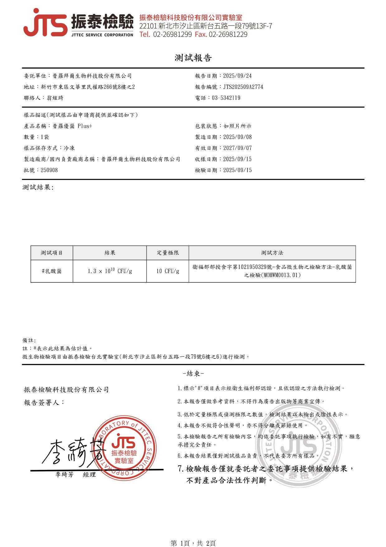 品名:普羅優菌Plus+